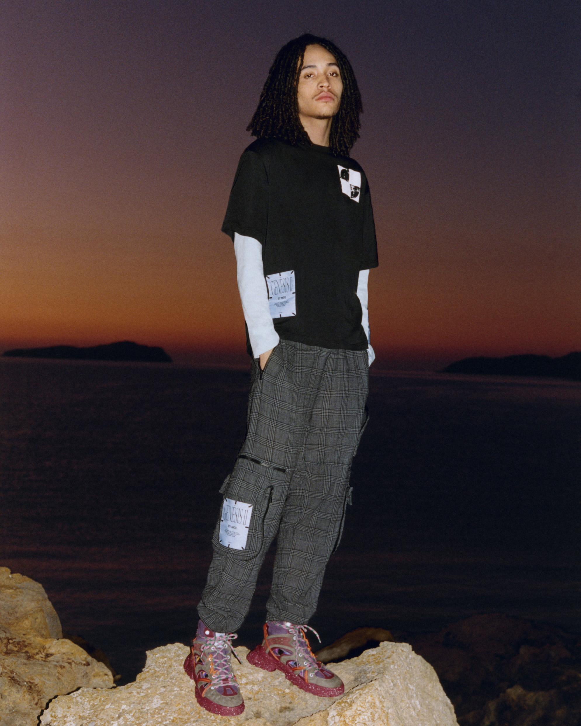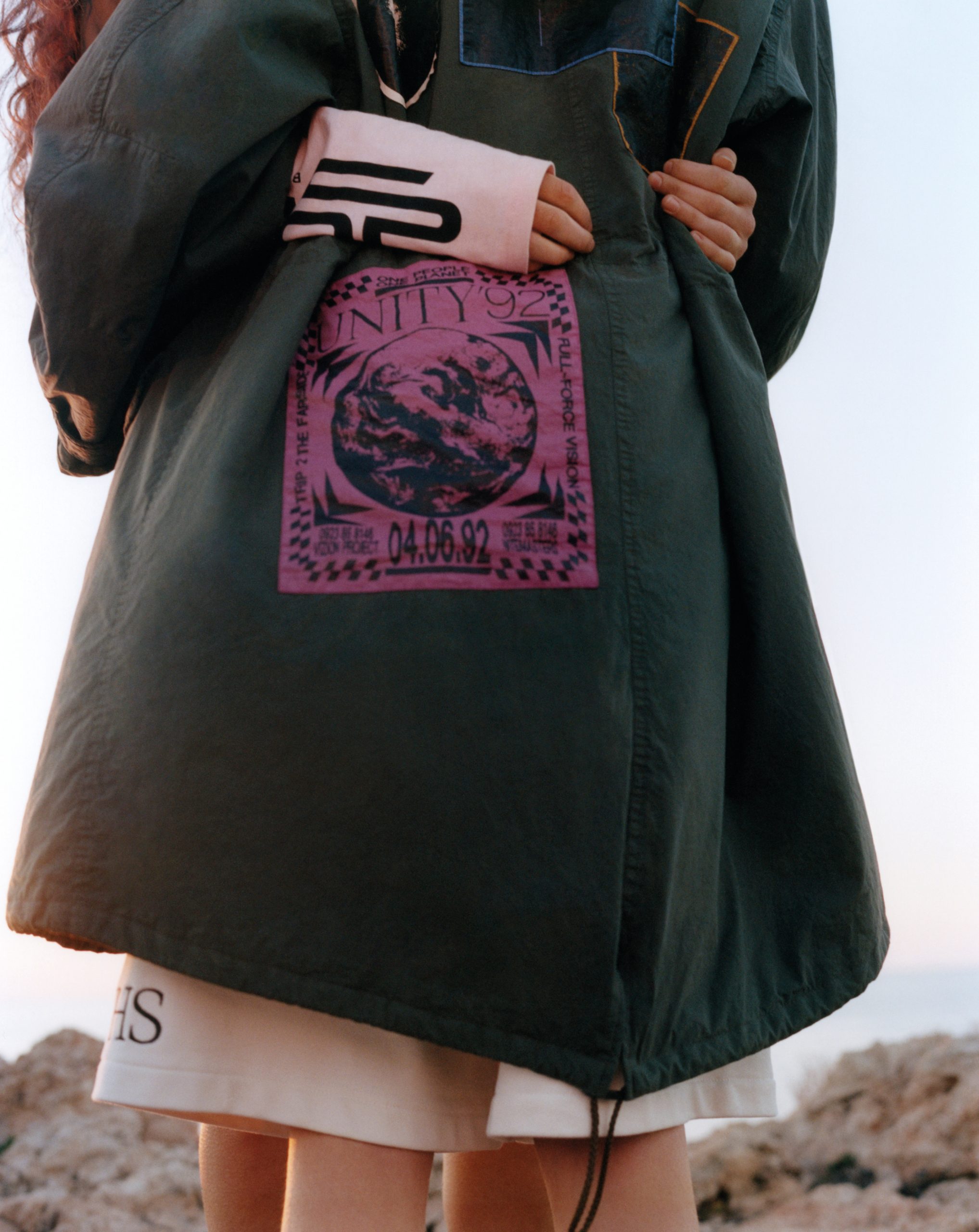 Moving away from the somewhat exclusive ‘high fashion’ concept, MCQ will serve partly as a creative platform, MY.MCQ.COM. A fully tech-integrated label, MCQ invites collaborators around the world to a new leaderless space in which to connect, whether they’ve bought the clothes or not. Collaborator led-content is also created into a feed, allowing MY.MCQ.COM to become a nurturing space for new talent and movements. This ethos is reflected physically by the label TAG, placed on the outside of the clothing, it tells the story of each collection, listing all the contributors involved.
