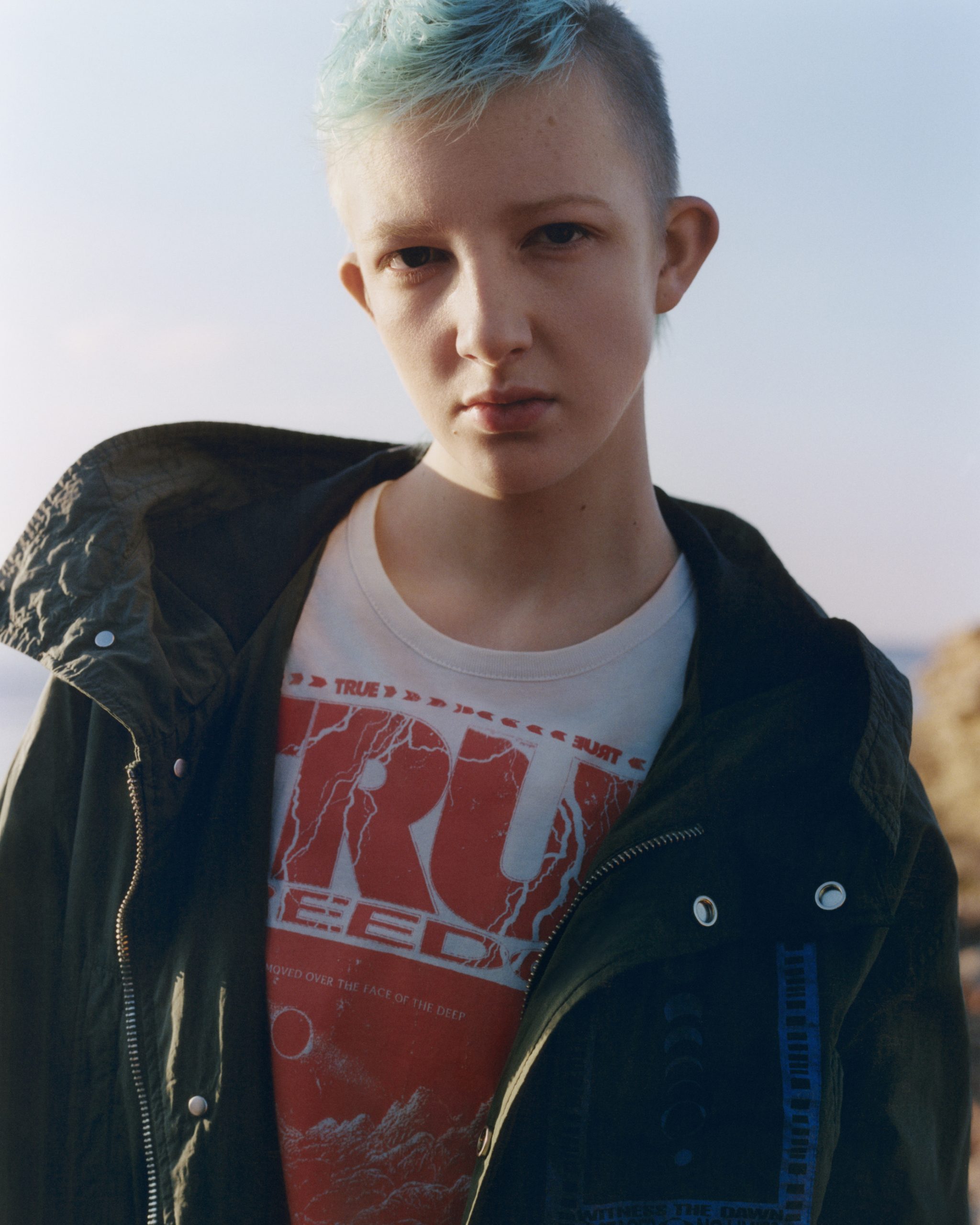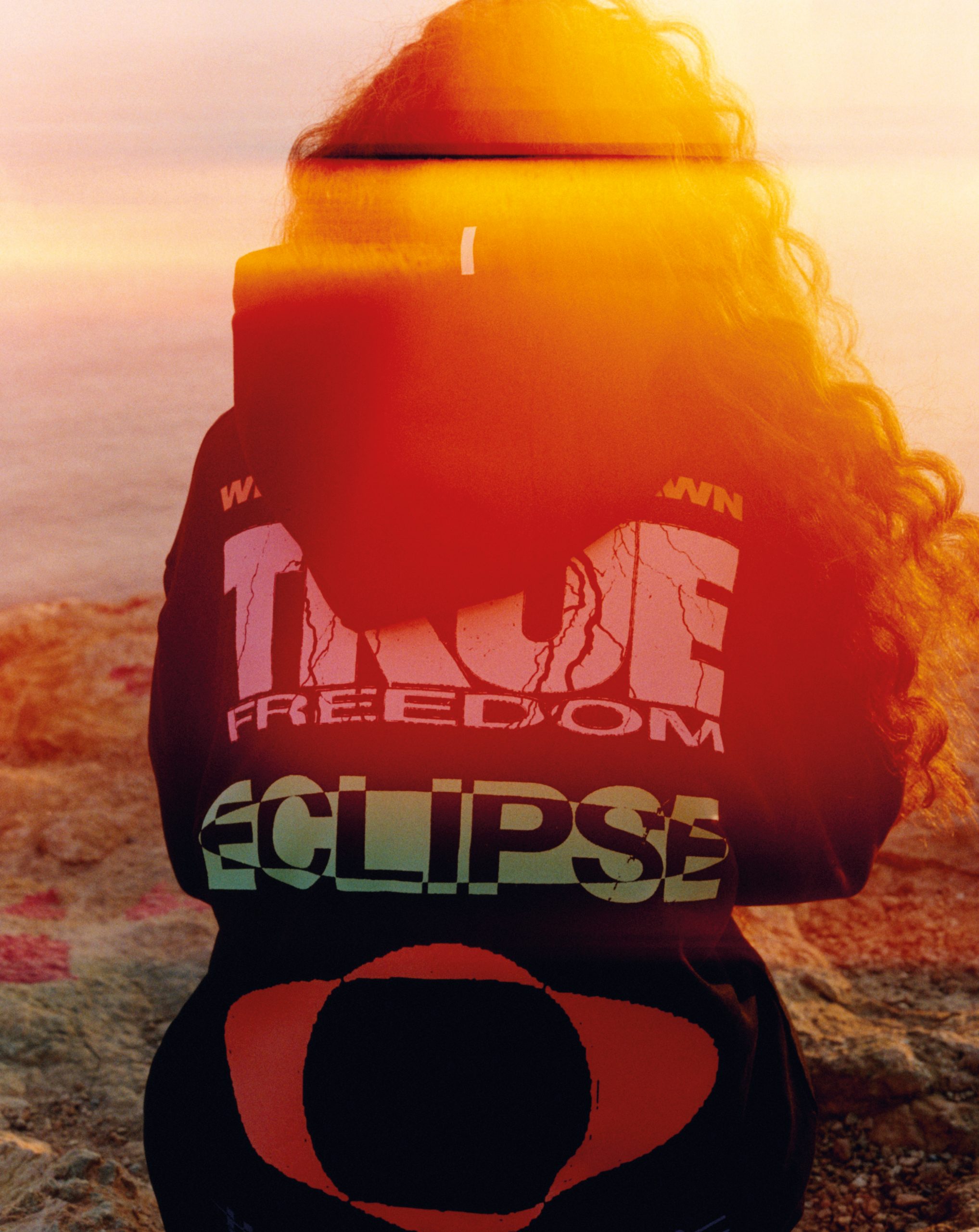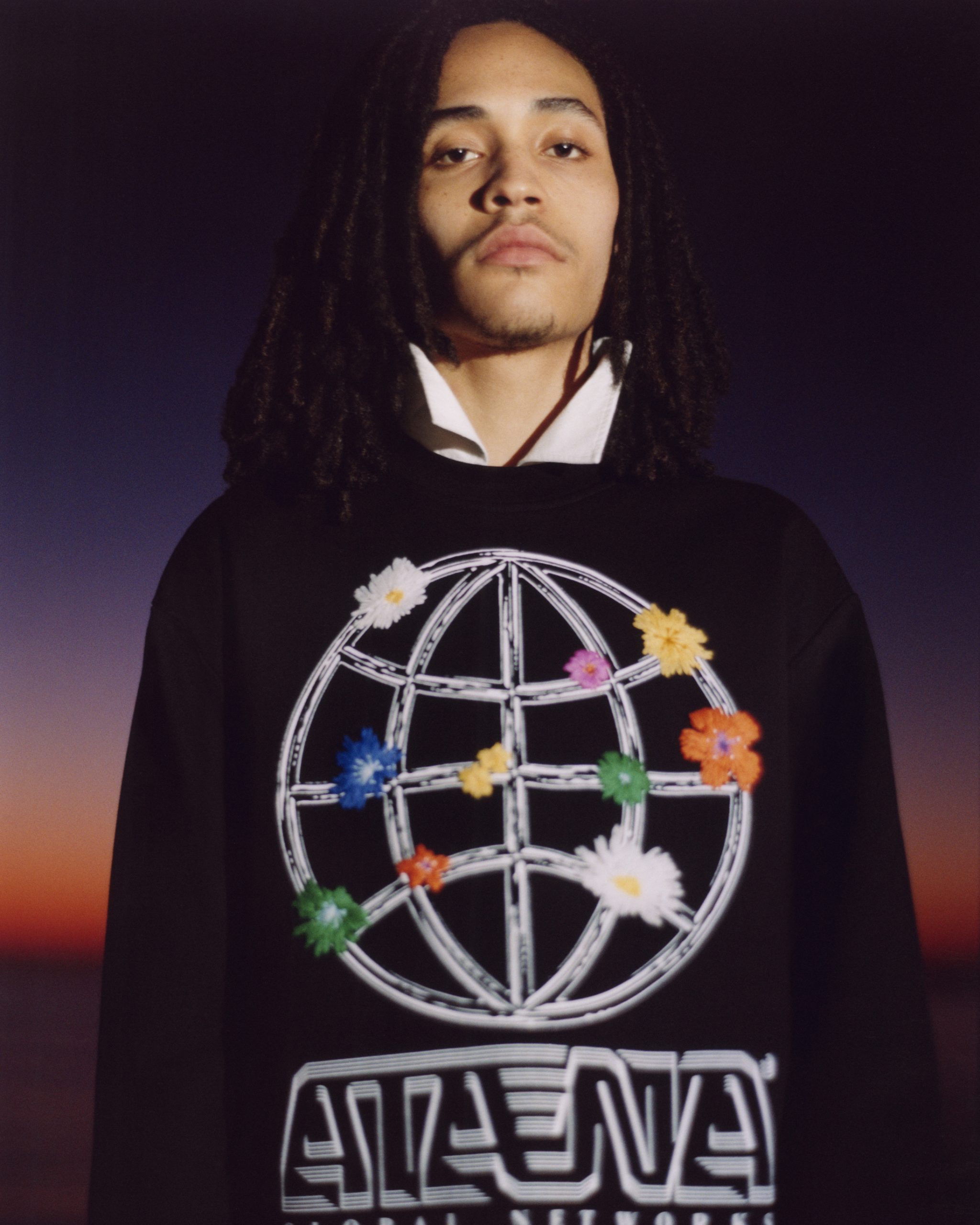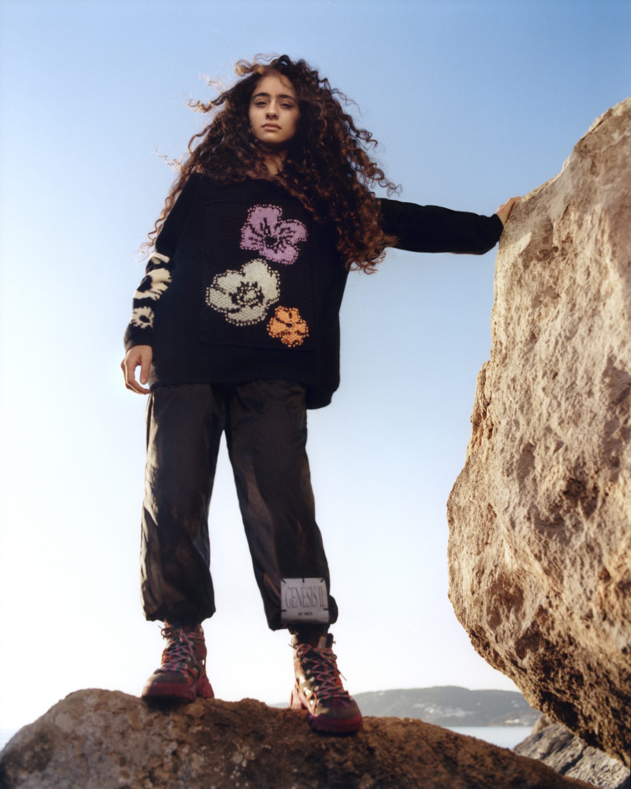 The collection also features hand embroidered flowers by two of its contributors, James Massiah and Shy Girl. Both of these bold multi-disciplinary London-based musicians are creating the concept for the launch party and also have a conversation between the two of them printed on to some of the pieces in their own handwriting.